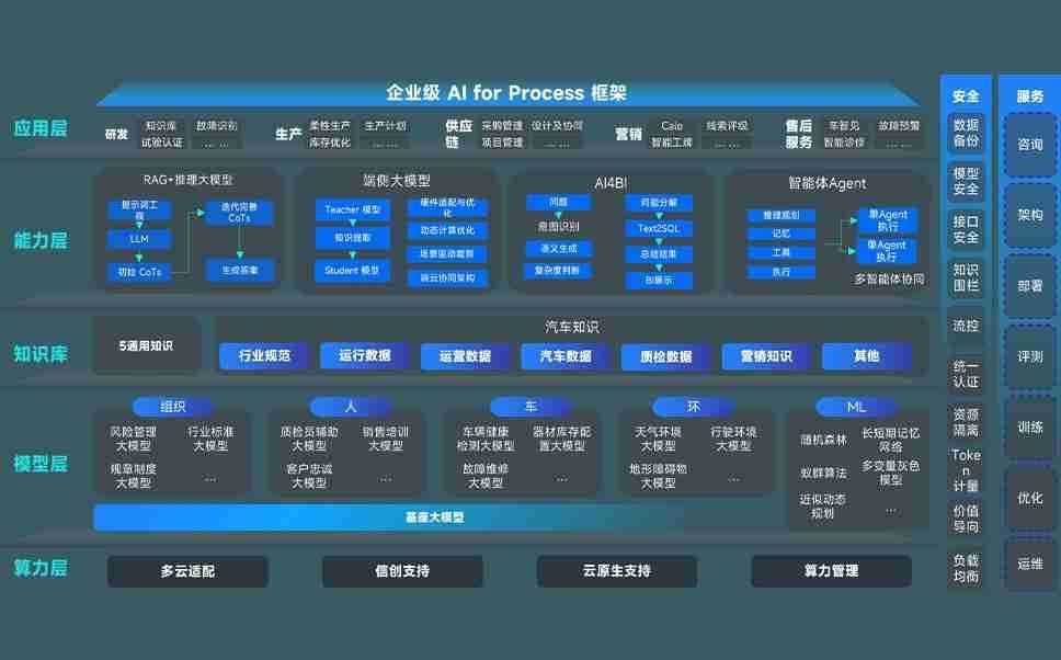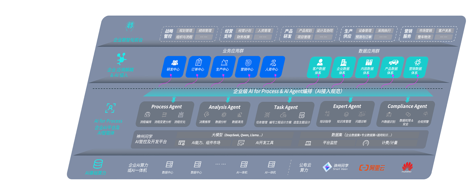 端到端的一站式AI工作空间深度融合了从企业战略规划到日常经营的全流程业务板块,,定向解决车企内部领域多、、、、部门多、、链条长、、场景碎片化等难题,,,支持车企快速构建以AI为核心的生产力写作体系,,,实现任务执行与AI能力的无缝集成与交互